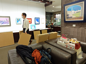 | 「今年初めての展覧会は西日本も豪雪に見舞われた。来場者も少ない中、立ち寄って下さった お客様はありがたく・・修太先生もアテンドに・・」 |